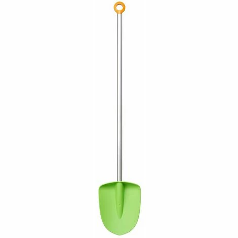 Durch den robusten, faserverstärkten Kunststoffkopf ohne scharfe Kanten ist er sicherer im Gebrauch als Metallspaten.