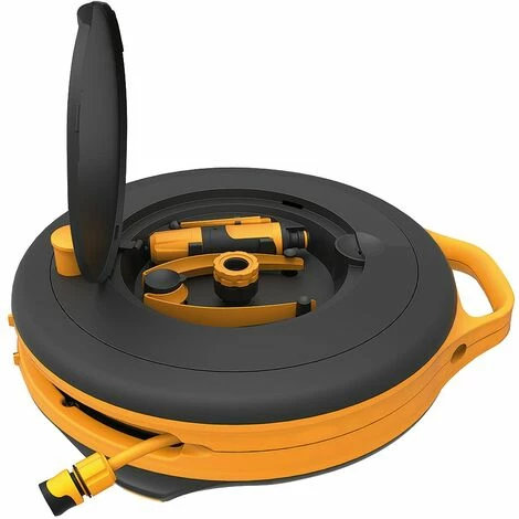 Das eingebaute Zubehörfach dieser Trommel ist mit einer verstellbaren Düse, einem mehrgängigen Hahnverbinder und einer nützlichen Sprüherhalterung ausgestattet – alles, was Sie für den Start benötigen.