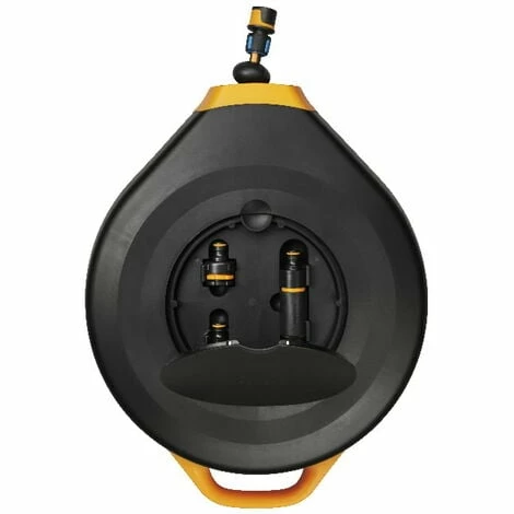 Die Schlauchtrommel XL mit automatischer Aufwicklung ist bereits nach wenigen Sekunden aus der Verpackung heraus bewässerungsbereit. Alle Teile sind im Lieferumfang enthalten und für eine mühelose Installation vorinstalliert. Die Haspel kann überall im Garten platziert werden und dank des 360°-Schwenkbereichs können Sie alle Ecken und Kanten problemlos bewässern. Bis zu doppelt so große Bewässerungsfläche im Vergleich zu herkömmlichen wandmontierten Aufrollern. Darüber hinaus verfügt der Schlauchaufroller XL über zahlreiche intelligente Innovationen, wie z. B. seine horizontale Positionierung, die ein einfaches Manövrieren ermöglicht und gleichzeitig ein Kippen verhindert. Die Schlauchtrommel XL wird mit einem hochwertigen 13-mm-Automatikschlauch (1/2″) mit 20 m Länge sowie allen erforderlichen Zubehörteilen, einschließlich Kupplungen und einer Sprühdüse geliefert, die alle geschickt in der Trommel selbst verstaut werden können. Eine optionale Wandhalterung ist separat erhältlich.