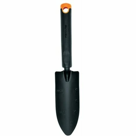Markierungen auf der Kelle erleichtern das Messen der Tiefe für perfektes Einpflanzen, Praktisches Aufhängeloch am Griffende zum platzsparenden Verstauen, Finnisches Design