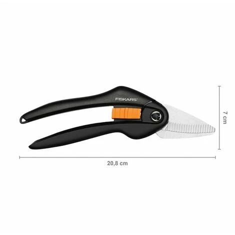Die Fiskars SingleStep™ Gartenschere ist ein äußerst praktisches Schneidwerkzeug für all die Schneidaufgaben, die Sie bei der Gartenarbeit haben. Wenn Sie jemals einen Faden abschneiden mussten, wenn Sie einen Rahmen aufbauen, oder wenn Sie einen leichten Draht abschneiden müssen, um etwas zu konstruieren, bietet diese Scheren einen unschätzbaren Schnittbegleiter. Ihre stabilen Griffe aus FiberComp sind für einen bequemen Griff ausgelegt und ihr insgesamt ausgewogenes Design liegt gut in der Hand für eine gleichmäßige Schneidleistung.
